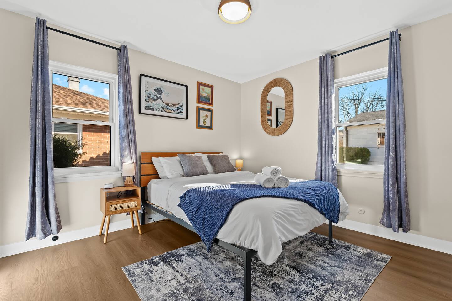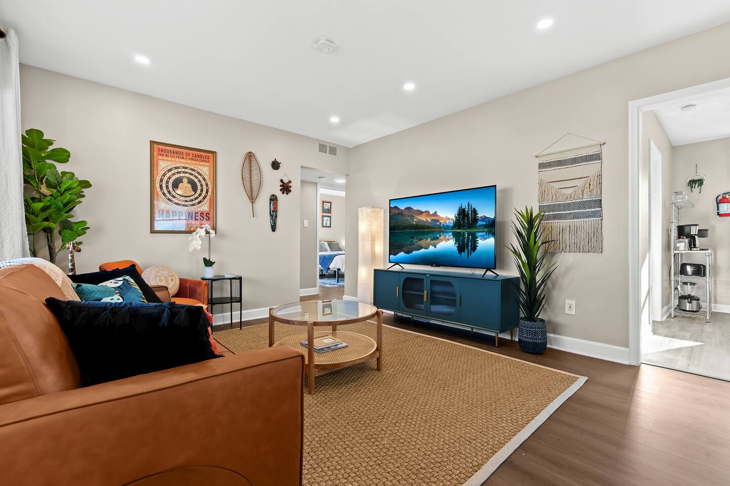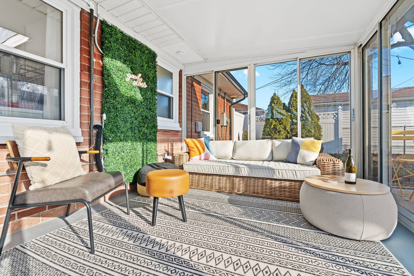 Discover the perfect getaway in our 2025-renovated tropical oasis! This 2-bedroom retreat offers a king and queen bed, an open living space, and a rare enclosed patio with a cozy lounge. Enjoy the private fenced backyard with a charcoal grill and firepit. Located near downtown, events, restaurants, and bars, it’s the ideal escape for relaxation and leisure. 🌿 Unique Enclosed Patio Experience: Escape to our rare enclosed patio, thoughtfully designed for ultimate comfort and relaxation. Enjoy the outdoors free from bugs and harsh weather while gazing at the stars through the skylight window. Elevate your entertainment with a massive 65-inch TV and 1500w electric fireplace, perfect for cozy nights watching your favorite shows or games. Step outside to our expansive private fenced backyard to savor summer evenings sharing stories around the firepit and creating unforgettable memories. 🍳 Culinary Adventures Await: Unleash your inner chef in our fully equipped kitchen, stocked with pots, pans, and cutlery. A bonus coffee station awaits, complete with a Keurig and coffee grinder for your enjoyment. 🛌 Cozy Bedrooms: Both bedrooms feature memory foam mattresses and light-blocking curtains to ensure restful sleep. One bedroom includes a luxurious king bed, a wall-mounted TV for your entertainment, and a working desk for added convenience to catch up on work or stay productive during your stay. 💖 Child-Friendly Design: Rest easy knowing our property is thoughtfully designed for families. It includes a pack-and-play for little ones, child-friendly kitchenette items, and a fully fenced backyard for safe outdoor play. 🧺 Laundry Convenience: Take care of your laundry needs in the laundry area, furnished with a brand-new washer, dryer, and ironing board. 🚗 Parking Options: Enjoy the convenience of a private driveway, accommodating two large vehicles or four smaller ones, or take advantage of unlimited free street parking. With effortless access to I75 and 696, our location is perfectly positioned for: 🚗 5 - Minute Drive to Ferndale, and the Detroit Zoo 🚗 8- Minute Drive to Royal Oak 🚗 15 - Minute Drive to Little Caesars Arena, Detroit, Ford Field, Fox Theatre, and Comerica Park 🛫25 - Minutes to Detroit Metropolitan Wayne County Airport (DTW) Enjoy the luxury design, convenience, and accessibility by booking your stay at our charming property today!