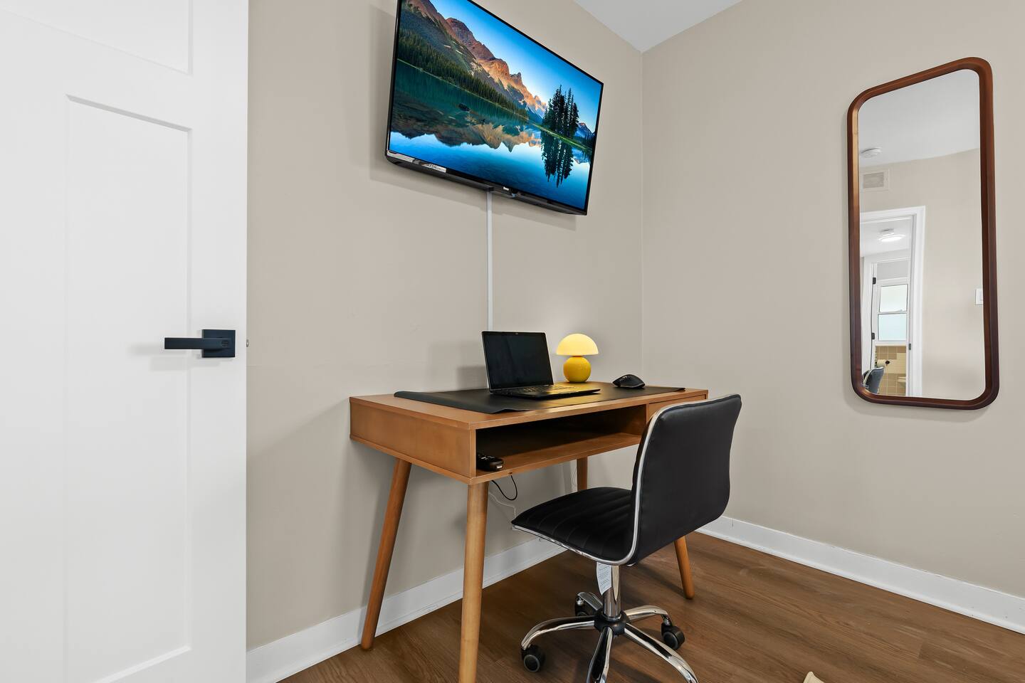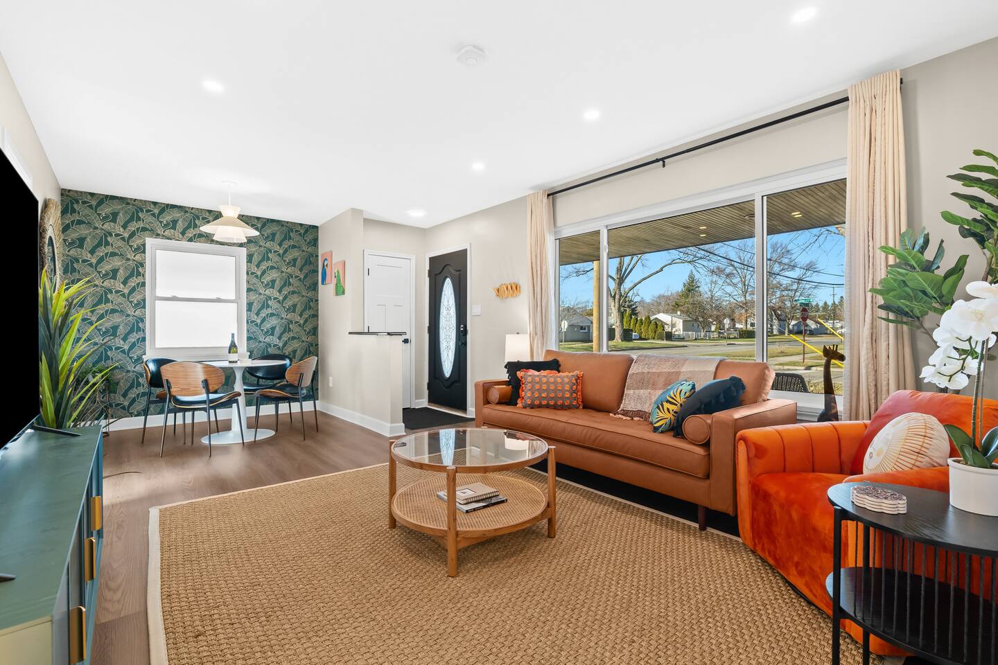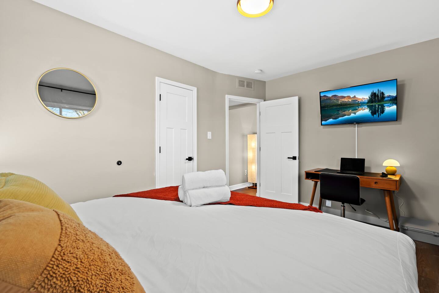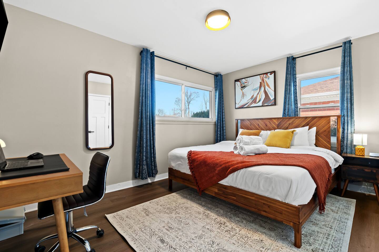 Discover the perfect getaway in our 2025-renovated tropical oasis! This 2-bedroom retreat offers a king and queen bed, an open living space, and a rare enclosed patio with a cozy lounge. Enjoy the private fenced backyard with a charcoal grill and firepit. Located near downtown, events, restaurants, and bars, it’s the ideal escape for relaxation and leisure. 🌿 Unique Enclosed Patio Experience: Escape to our rare enclosed patio, thoughtfully designed for ultimate comfort and relaxation. Enjoy the outdoors free from bugs and harsh weather while gazing at the stars through the skylight window. Elevate your entertainment with a massive 65-inch TV and 1500w electric fireplace, perfect for cozy nights watching your favorite shows or games. Step outside to our expansive private fenced backyard to savor summer evenings sharing stories around the firepit and creating unforgettable memories. 🍳 Culinary Adventures Await: Unleash your inner chef in our fully equipped kitchen, stocked with pots, pans, and cutlery. A bonus coffee station awaits, complete with a Keurig and coffee grinder for your enjoyment. 🛌 Cozy Bedrooms: Both bedrooms feature memory foam mattresses and light-blocking curtains to ensure restful sleep. One bedroom includes a luxurious king bed, a wall-mounted TV for your entertainment, and a working desk for added convenience to catch up on work or stay productive during your stay. 💖 Child-Friendly Design: Rest easy knowing our property is thoughtfully designed for families. It includes a pack-and-play for little ones, child-friendly kitchenette items, and a fully fenced backyard for safe outdoor play. 🧺 Laundry Convenience: Take care of your laundry needs in the laundry area, furnished with a brand-new washer, dryer, and ironing board. 🚗 Parking Options: Enjoy the convenience of a private driveway, accommodating two large vehicles or four smaller ones, or take advantage of unlimited free street parking. With effortless access to I75 and 696, our location is perfectly positioned for: 🚗 5 - Minute Drive to Ferndale, and the Detroit Zoo 🚗 8- Minute Drive to Royal Oak 🚗 15 - Minute Drive to Little Caesars Arena, Detroit, Ford Field, Fox Theatre, and Comerica Park 🛫25 - Minutes to Detroit Metropolitan Wayne County Airport (DTW) Enjoy the luxury design, convenience, and accessibility by booking your stay at our charming property today!